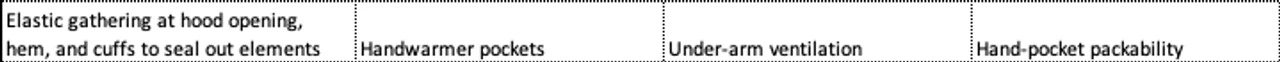 - Packable stow pocket inside left hand pocket