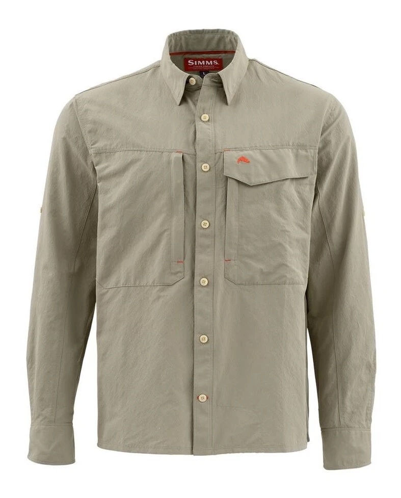 A guide-favorite shirt made of quick-drying fabric. Elevate your fishing kit in the Simmsâ Guide Shirt. The menâs shirt is built with fabric that wicks moisture, dries quickly and offers UPF 50 performance.