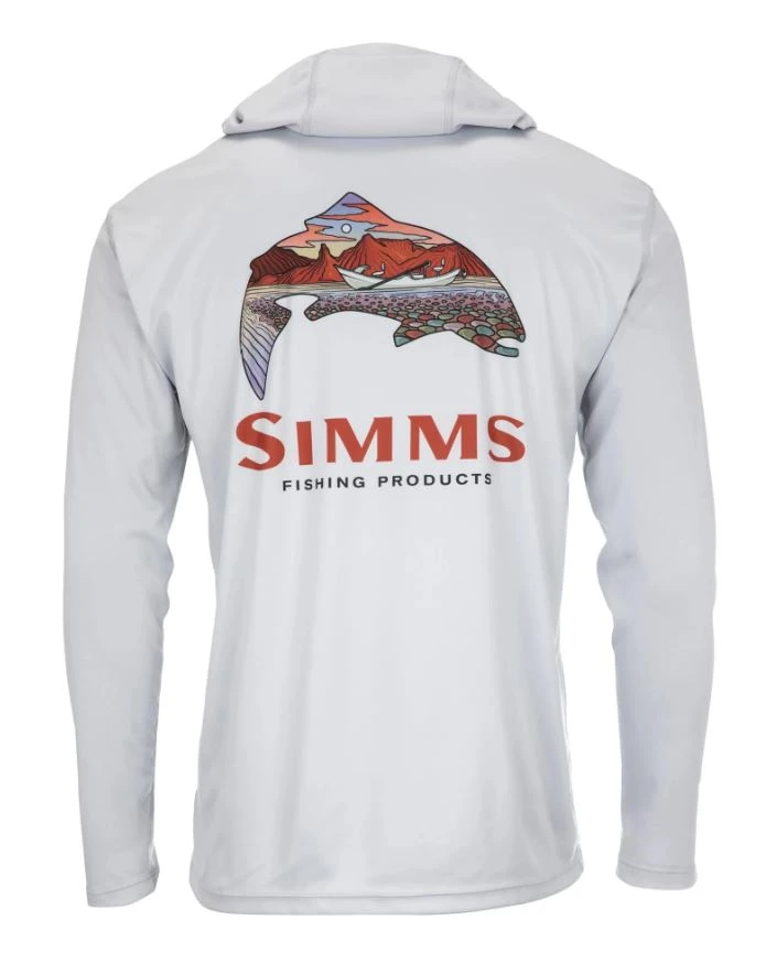 Simms Men’s Tech Hoody – Artist Series – Trout Logo Flame/Sterling FFF Logo