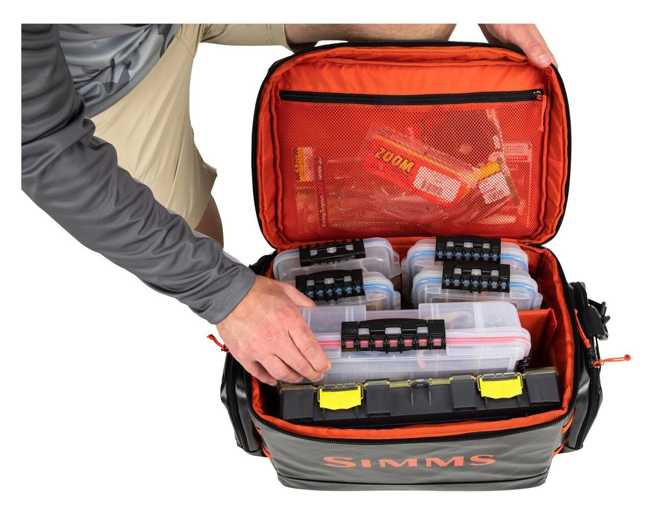 - Laser-cut lash ports and webbing loops offer attachment of tools, as well as other Simms packs and accessories