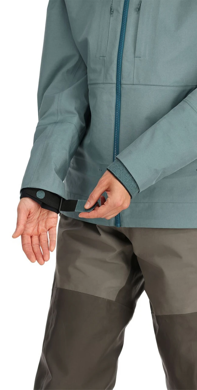 Next-level architecture designed by – and for – women who fish Charge hard into the elements with Simms’ Guide Jacket, powered by contoured design lines, savvy sleeve articulation, and the highly breathable benefits of 3-layer GORE-TEX® shell fabric. Angler-driven accents start with Shingle Cuffs™ that prevent up-sleeve water migration, a lined, wind-cutting collar, and fulltime shelter under an adjustable stormproof hood.